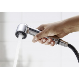 Ergonomická páka umiestnená navrchu umožňuje jednoduché ovládanie vody. Výtok otočný o 180° poskytuje dostatočný pracovný dosah. Spoľahlivý chod zabezpečuje keramická kartuša a integrovaný spätný ventil podľa normy EN 1717.