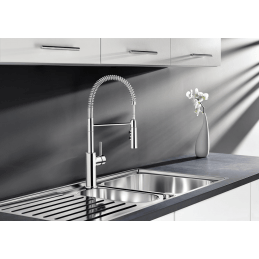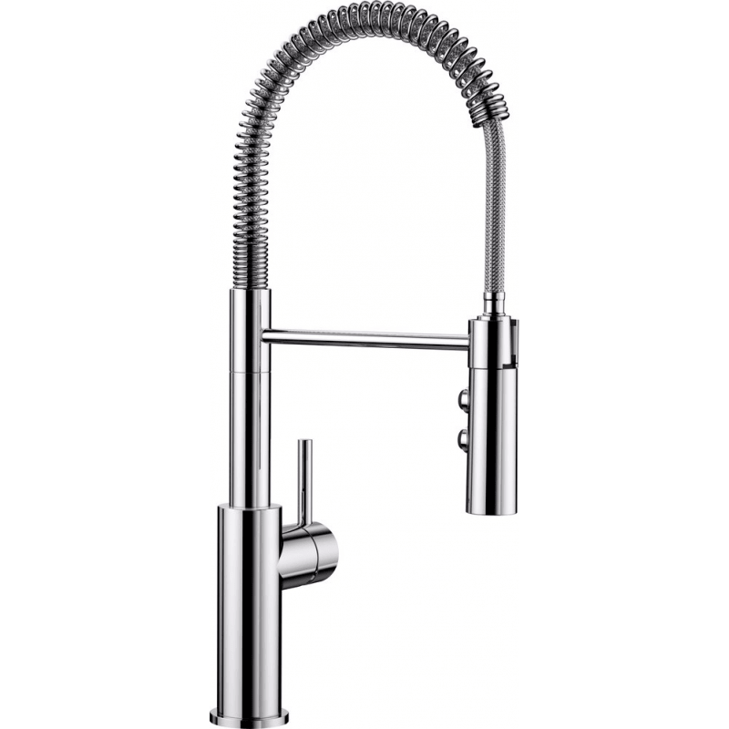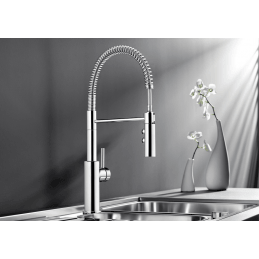 Táto profesionálna kuchynská batéria BLANCO spája moderný dizajn, vysokú funkčnosť a precízne spracovanie. Nerezová pružina umožňuje voľný pohyb spršky po celej oblasti drezu, pričom ju možno jednoducho zaaretovať do tela batérie. Vďaka praktickému riešeniu poskytuje maximálnu slobodu pri práci v kuchyni – ideálne pre bežné aj intenzívne používanie.