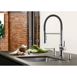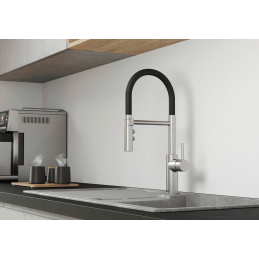 Flexibilná čierna hadica zo silikónu – poskytuje optimálny rozsah pohybu po celej ploche drezu.
