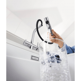 Blanco Fontas-S II je pohodlná a multifunkčná kuchynská batéria 3-v-1, ktorá umožňuje používanie studenej, teplej aj filtrovanej vody z jedného výtoku. Vďaka vysúvateľnej sprške a samostatnému vodnému okruhu pre filtrovanú vodu ponúka maximálny komfort bez kompromisov v hygiene či dizajne.