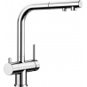 Blanco Fontas-S II je pohodlná a multifunkčná kuchynská batéria 3-v-1, ktorá umožňuje používanie studenej, teplej aj filtrovanej vody z jedného výtoku. Vďaka vysúvateľnej sprške a samostatnému vodnému okruhu pre filtrovanú vodu ponúka maximálny komfort bez kompromisov v hygiene či dizajne.