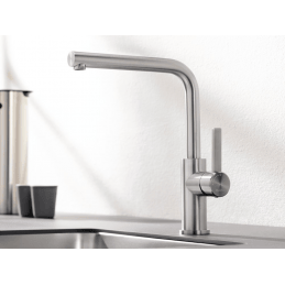 Blanco Lanora je moderná jednopáková kuchynská batéria, ktorá vyniká vysokou funkčnosťou, precíznym spracovaním a nadčasovým dizajnom. Je vyrobená z kvalitnej nerezovej ocele a jej charakteristický tvar tela v podobe písmena L zabezpečuje zvýšený komfort pri každodennej manipulácii v kuchyni.