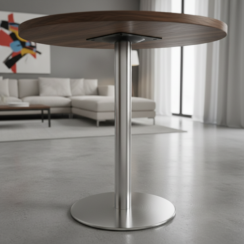 Elegantná okrúhla stolová podnož SOUND v prevedení brúsený nerez ponúka moderný vzhľad a stabilitu pre menšie aj stredne veľké stolové dosky. Vďaka širokej okrúhlej základni a pevnej konštrukcii je vhodná do domácností, kaviarní, reštaurácií či kancelárií.