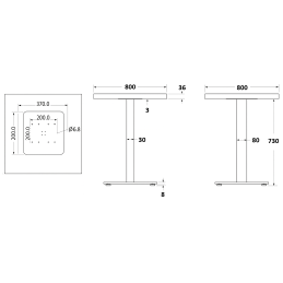 Maximálny odporúčaný rozmer stolovej dosky: 800 × 800 mm