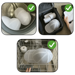 S touto pomôckou už nemusíte čiapky prať ručne. Stačí vložiť šiltovku do ochrannej klietky, zapnúť sieťku a vložiť do práčky – bezpečne, rýchlo a bez poškodenia tvaru.