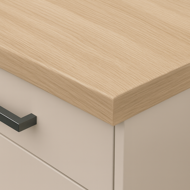 Na výber sú polotovary alebo úprava na mieru – stačí zadať presné rozmery a vybrať, ktoré strany majú byť olepené ABS hranou. Dosky sú rezané presne profesionálnou technológiou.