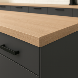 Kvalitná pracovná doska z drevotriesky potiahnutá odolným laminátom, ktorý zaručuje vysokú odolnosť voči poškriabaniu, oderu, námahe aj teplu pri bežnom používaní. Moderný dekor dodá vašej kuchyni alebo pracovnému priestoru elegantný vzhľad.
