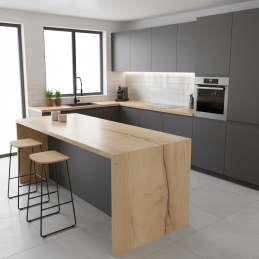 Pracovná doska Dub Halifax Prírodný od renomovaného výrobcu EGGER spája moderný dizajn s vysokou odolnosťou. Vďaka špeciálnej 3D povrchovej štruktúre verne imituje prirodzený vzhľad dreva – na pohľad aj na dotyk cítite jemné póry, reliéfy a linky typické pre dubové drevo.
