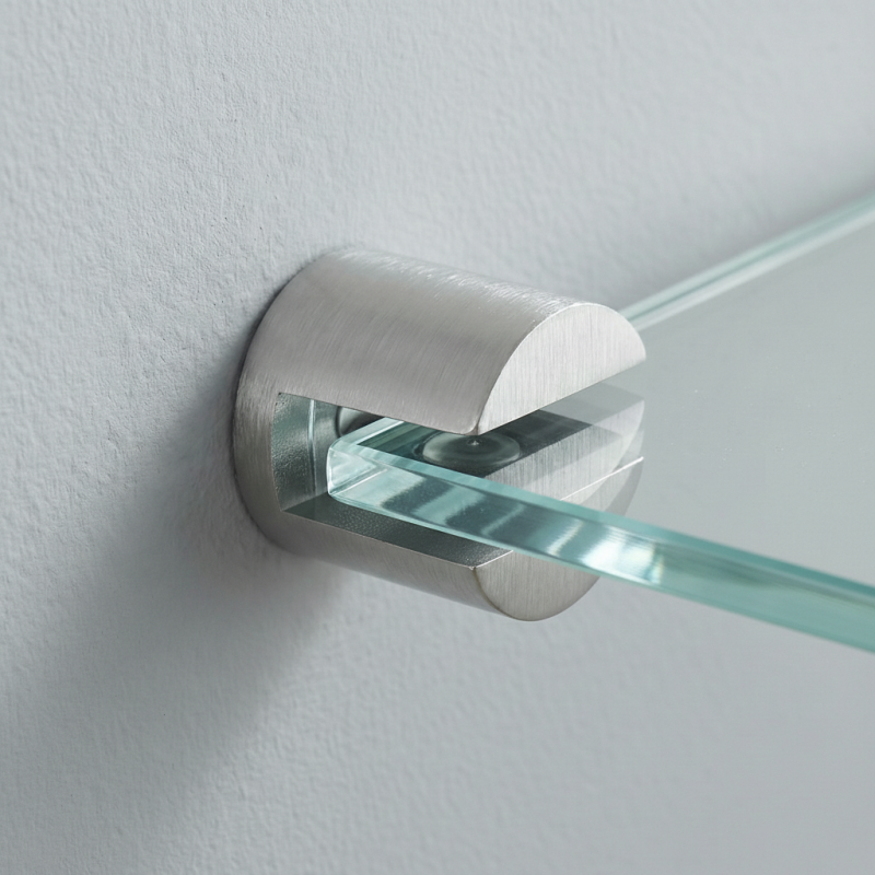 Držiak LONIA je vhodný na uchytenie sklenených políc, pričom vnútorná ochranná podložka zabezpečuje stabilitu a chráni sklo pred poškodením. Predstavuje praktické a dizajnovo čisté riešenie pre moderné interiéry.