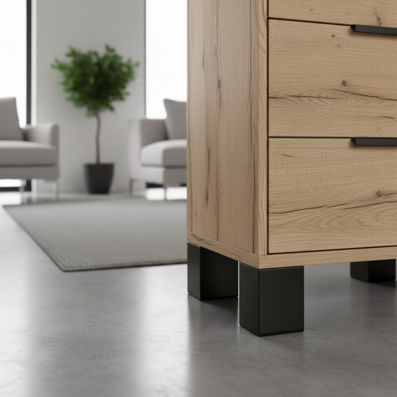 Elegantná, moderná a stabilná nábytková nožička XANA v štýlovom prevedení čierna je ideálnou voľbou pre komody, skrinky, TV stolíky, kúpeľňový nábytok či nočné stolíky.