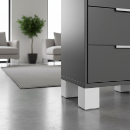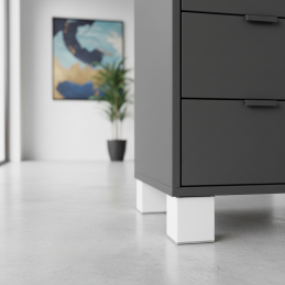 Jednoduchá, moderná a stabilná nábytková nožička XANA v elegantnej bielej farbe je ideálnym riešením pre komody, skrinky, TV stolíky, kúpeľňový nábytok či nočné stolíky.