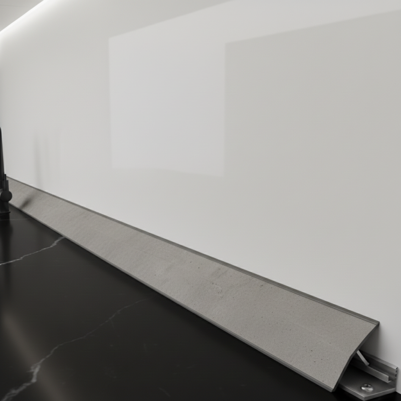 Pozostáva z dvoch častí – spodná časť sa naskrutkuje alebo nalepí na pracovnú dosku a horná sa následne zacvakne do spodnej. Výsledkom je čisté, presné a pevné zakončenie v rovnakom dekore ako pracovná doska.