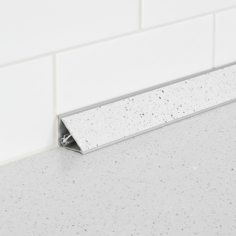 Elegantná a nadčasová tesniaca lišta KRONOSPAN v dekore Andromeda Biela matná (K217 GM) je určená na profesionálne a estetické zakončenie pracovných dosiek. Lišta spoľahlivo utesňuje spoj medzi pracovnou doskou a stenou, čím účinne zabraňuje prenikaniu vody a nečistôt, a zároveň dodáva kuchyni jemný, čistý a moderný vzhľad bieleho mramoru s decentnými trblietkami a matným povrchom.