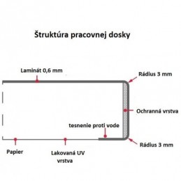Na mieru – možnosť profesionálneho rezania podľa požiadaviek a olepenia strán ABS hranou. Predná hrana je z výroby hotová.
