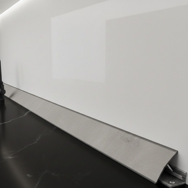Pozostáva z dvoch častí – spodná časť sa naskrutkuje alebo nalepí na pracovnú dosku a horná sa následne zacvakne do spodnej. Tak vzniká pevné, presné a elegantné zakončenie v rovnakom dekore ako pracovná doska.