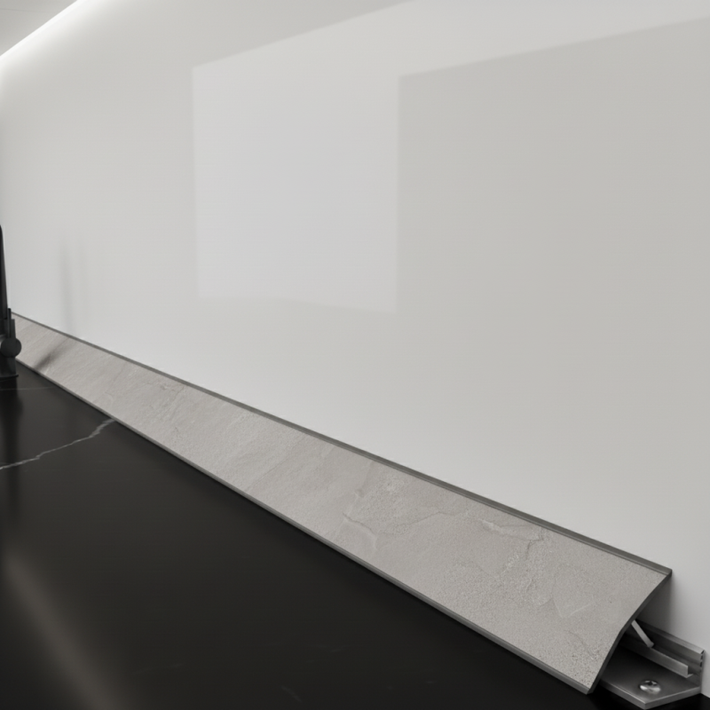 Elegantná a moderná tesniaca lišta EGGER v dekore Bridlica Scivaro svetlošedá (F234) je určená na profesionálne a štýlové zakončenie pracovných dosiek. Spoľahlivo utesňuje spoj medzi pracovnou doskou a stenou, čím účinne zabraňuje prenikaniu vody a nečistôt, a zároveň dodáva interiéru prirodzený kamenný vzhľad svetlej bridlice.
