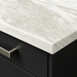Dekor Venato Lesklá (K023 SQ) verne napodobňuje biely mramor s jemným sivým žilkovaním, čím dodáva kuchyni, pracovnému či kancelárskemu priestoru luxusný, elegantný a nadčasový vzhľad.