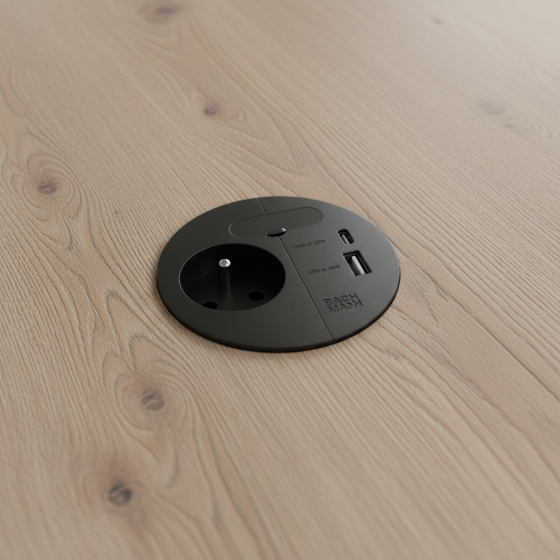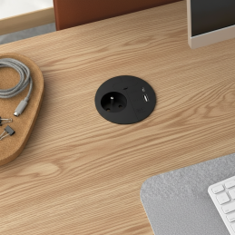 Elektrická zásuvka LOOP IN Charge v elegantnom čiernom prevedení je moderné riešenie napájania pre pracovné stoly, kuchyne, kancelárie či vstavaný nábytok. Spája prémiový dizajn, vysoký výkon a praktickosť – ideálna pre moderné aj industriálne interiéry.