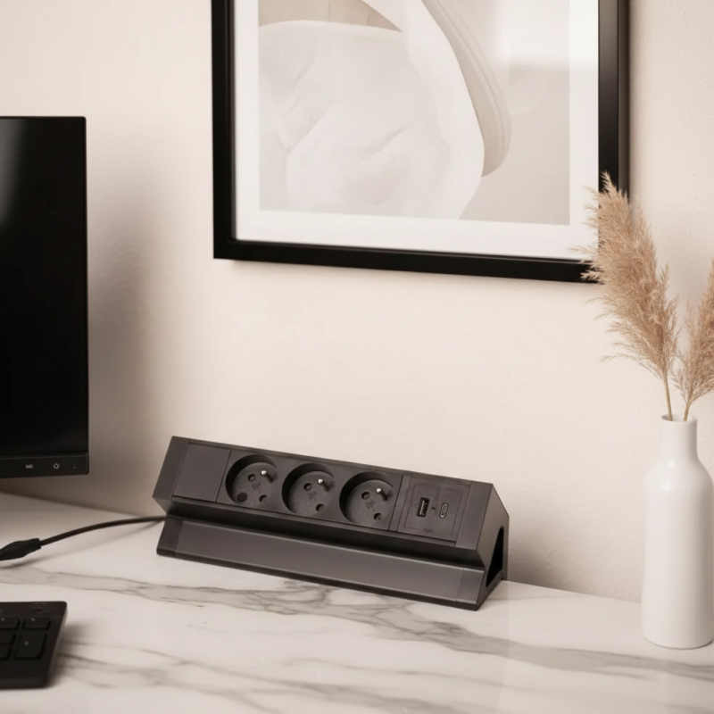 Stolová zásuvka DESK prináša komfort, poriadok a efektívne využitie pracovného priestoru. Je ideálnou voľbou pre každého, kto chce mať napájanie vždy poruke a zároveň zachovať čistý vzhľad pracovnej plochy.