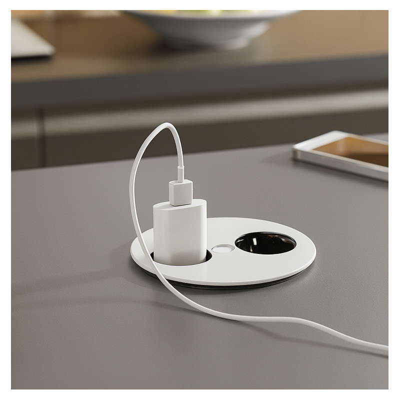 Elektrická zásuvka TWISTER je moderné a priestorovo úsporné riešenie pre kuchynské linky, kancelárske stoly či pracovné plochy. Vďaka svojej veľmi nízkej montážnej hĺbke ju možno jednoducho integrovať aj nad zásuvky, ktorým vôbec neprekáža.