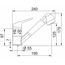 • Vytiahnuteľná sprchová koncovka s prepínaním prúd / sprcha