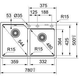 • Rozmery drezu: 780 × 500 mm