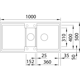 • Vonkajší rozmer drezu: 1000 × 500 mm
