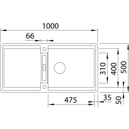 • Vonkajší rozmer drezu: 1000 × 500 mm