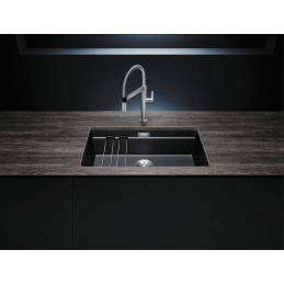 Blanco Etagon 700-U je moderný a prémiový granitový kuchynský drez, ktorý kombinuje priestrannú vaničku s inovatívnym systémom ETAGON. Vďaka univerzálnym koľajniciam ETAGON ponúka tretiu pracovnú úroveň, čím z drezu vytvára plnohodnotné umývacie centrum s mimoriadne efektívnym využitím priestoru.