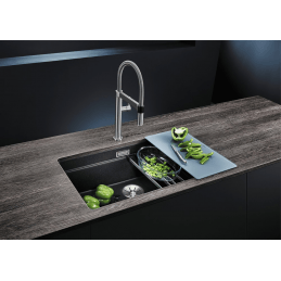 Blanco Etagon 700-U je moderný a prémiový granitový kuchynský drez, ktorý kombinuje priestrannú vaničku s inovatívnym systémom ETAGON. Vďaka univerzálnym koľajniciam ETAGON ponúka tretiu pracovnú úroveň, čím z drezu vytvára plnohodnotné umývacie centrum s mimoriadne efektívnym využitím priestoru.