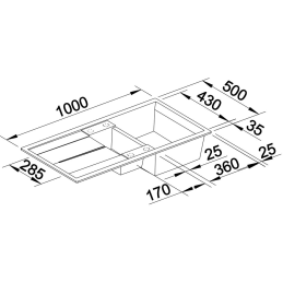 • Veľkorysé rozmery drezu: 1000 × 500 mm – dostatok pracovného priestoru.