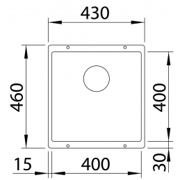 S celkovými rozmermi 430 × 460 mm a veľkorysou vaničkou 400 × 400 mm (hĺbka 190 mm) poskytuje dostatok priestoru pre každodenné kuchynské činnosti. Absencia horného okraja umožňuje jednoduché zotieranie nečistôt priamo do drezu a opticky zväčšuje pracovnú plochu.