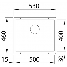 S celkovými rozmermi 530 × 460 mm a priestrannou vaničkou 500 × 400 mm (hĺbka 190 mm) poskytuje komfortný pracovný priestor pre každodenné umývanie aj manipuláciu s väčším riadom. Spodná montáž zároveň umožňuje jednoduché zotieranie nečistôt priamo do drezu a opticky zväčšuje pracovnú plochu.