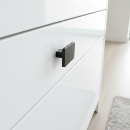 Úchytka je vyrobená z kvalitného kovu, ktorý zabezpečuje pevnosť, stabilitu a dlhú životnosť. Jednoduchý geometrický tvar so zaoblenými hranami poskytuje pohodlný úchop a čistý dizajn.
