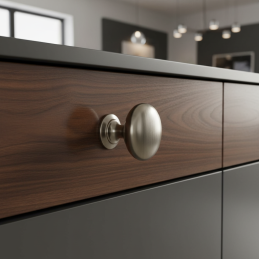 Knopka CAMORA v elegantnom prevedení brúsený nikel predstavuje nadčasový a vkusný doplnok, ktorý skvele zapadne do moderných aj klasických interiérov. Jej harmonický tvar, jemné línie a luxusný kovový povrch dodávajú nábytku štýlový a profesionálny vzhľad.