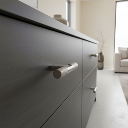 Elegantná a moderná knopka INDUST DUO v povrchovej úprave ušľachtilá oceľ mat je skvelou voľbou pre industriálne, moderné aj minimalistické interiéry. Charakteristický ryhovaný povrch dodáva úchytke technický vzhľad a zároveň zabezpečuje pohodlný a pevný úchop.