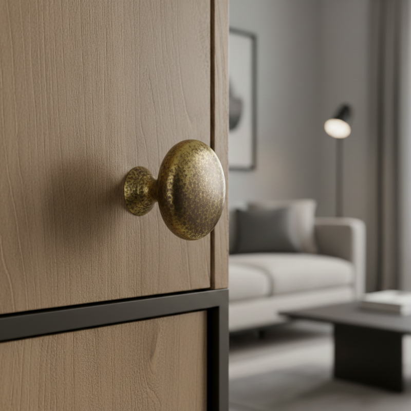 Knopka BEA v prevedení staromosadz prináša do interiéru teplý, elegantný a mierne vintage nádych. Je ideálnym doplnkom pre nábytok v klasickom, vidieckom či industriálnom štýle, kde svojím zemitým kovovým tónom podčiarkne prirodzený a nadčasový charakter interiéru.