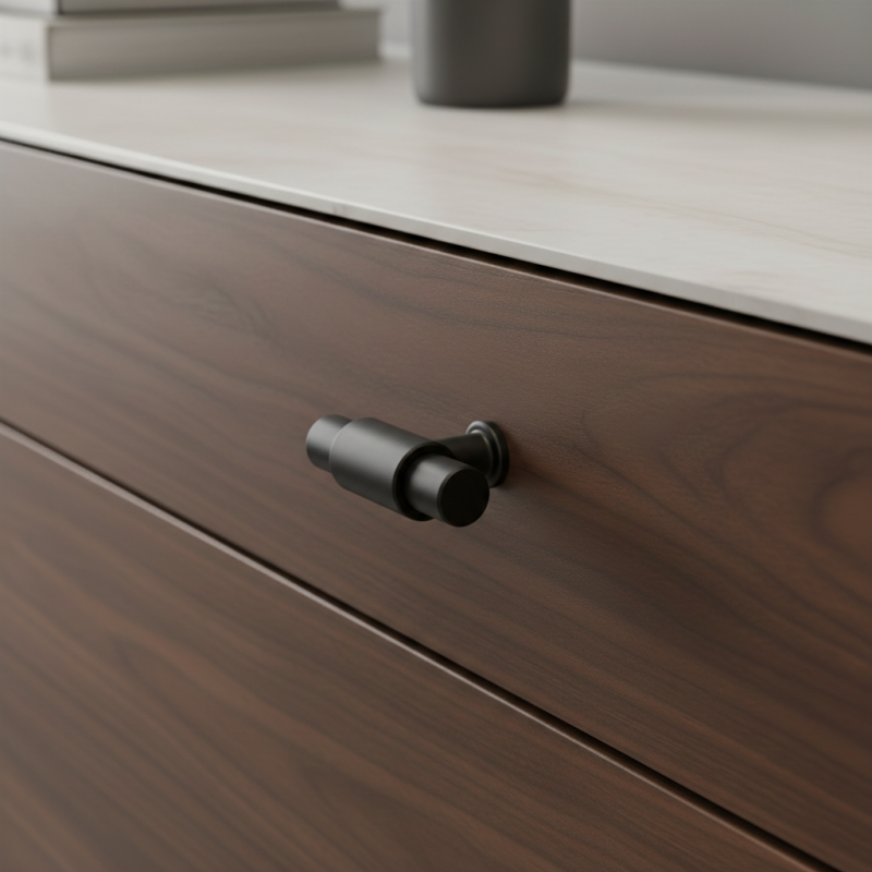 Moderná úchytka – knopka TINA DUO v prevedení čierna matná je elegantným a výrazným detailom, ktorý skvele doplní minimalistické, industriálne aj moderné interiéry. Jej dvojitý valcový tvar pôsobí harmonicky a nadčasovo, vďaka čomu je vhodná pre kuchynský, kúpeľňový aj obytný nábytok.