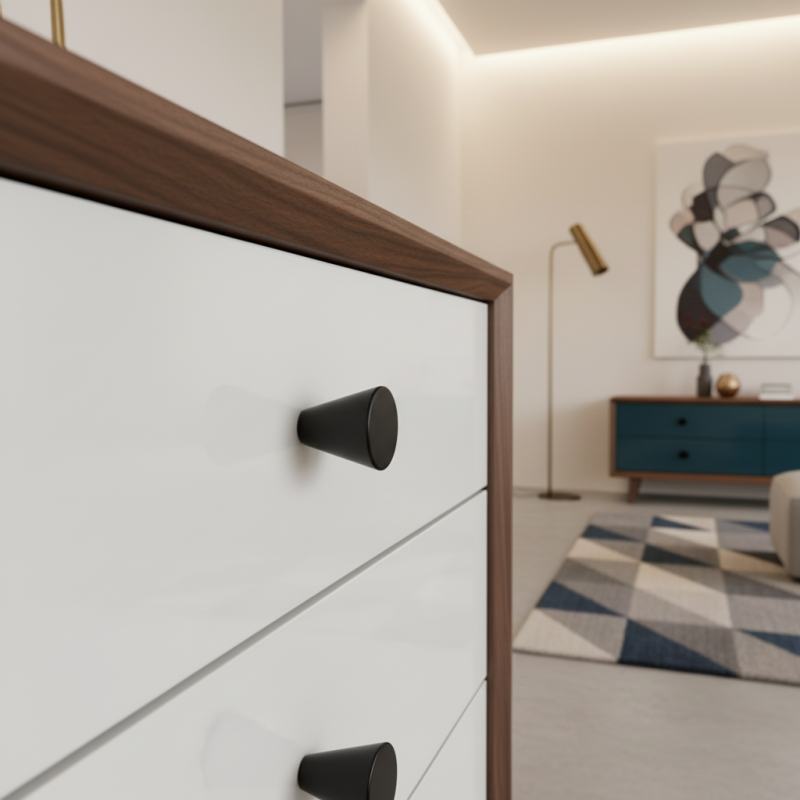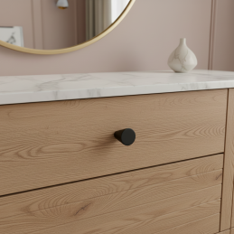 Elegantná nábytková knopka MANGO v čiernej matnej farbe je ideálnou voľbou pre moderný aj minimalistický interiér. Jej jemne kónický tvar zabezpečuje pohodlné uchopenie a dodáva nábytku štýlový detail.