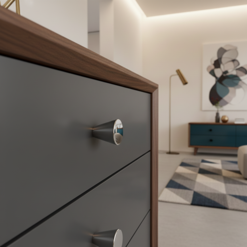 Elegantná a moderná nábytková knopka MANGO v povrchovej úprave lesklý chróm dodá vášmu nábytku nadčasový a prémiový vzhľad. Vďaka jednoduchému kónickému tvaru sa pohodlne uchopuje a ľahko kombinuje s rôznymi štýlmi interiéru.