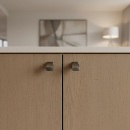 Jej jemne patinovaný kovový vzhľad dodáva skrinkám, komodám či nočným stolíkom výnimočný charakter a nadčasovú estetiku.