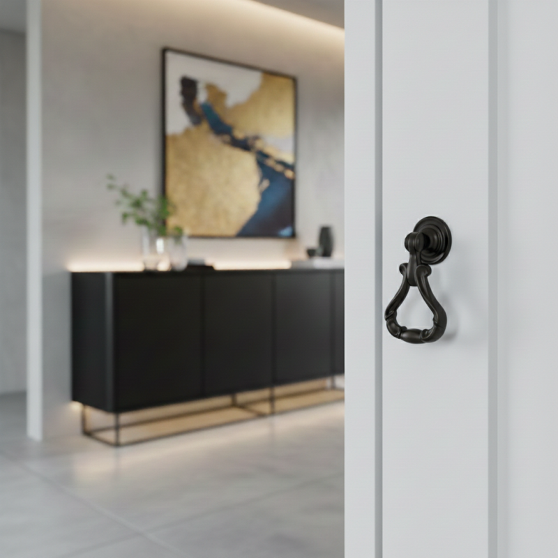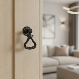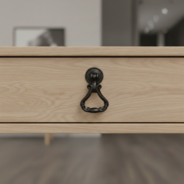 Vkusná rustikálna úchytka typu knopka CORTINA v čiernom matnom prevedení je ideálnym doplnkom pre nábytok v rustikálnom, industriálnom aj vintage štýle. Bohato tvarovaný dizajn s pohyblivým spodným úchopom dodáva nábytku charakter a zároveň zabezpečuje pohodlné používanie.