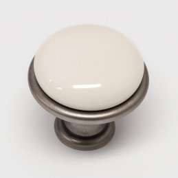 Porcelánová knopka TOSCANA v kombinácii kovovej základne v úprave nikel patina a hladkého bieleho porcelánu je ideálnym doplnkom pre tých, ktorí uprednostňujú jednoduchú eleganciu a čistý dizajn. Vďaka svojmu decentnému vzhľadu sa hodí do moderných aj klasických interiérov.