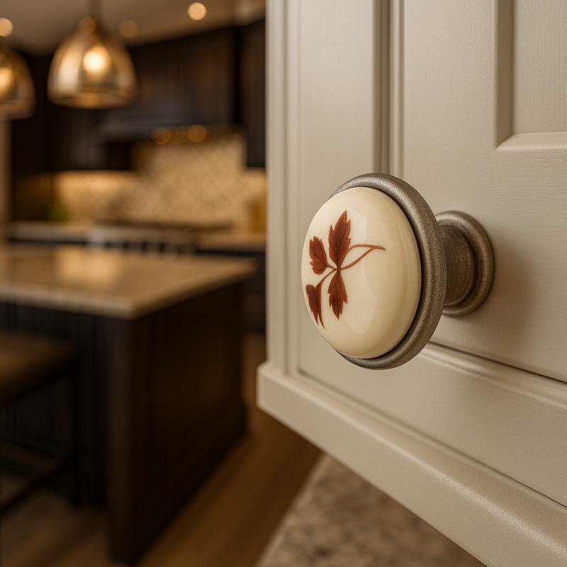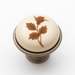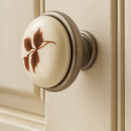 Porcelánová knopka TOSCANA je dokonalým spojením tradičného štýlu a nadčasovej elegancie. Kombinácia kovovej spodnej časti v úprave nikel patina a porcelánového vrchného dielu s jemným motívom listu dodáva každému nábytku jedinečný charakter.