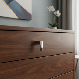 Knopka PRAKTIS v prevedení lesklý chróm je štýlovým riešením pre moderné interiéry, kde sa kladie dôraz na čisté línie, praktickosť a nadčasový dizajn. Jej geometrický tvar s jemným zošikmením dodáva nábytku moderný a sofistikovaný vzhľad, zatiaľ čo zrkadlový chrómový povrch prináša luxusný lesk a vysokú estetickú hodnotu.