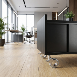Koliesko je vybavené mäkčeným behúňom, vďaka ktorému je vhodné aj na citlivé podlahy, ako sú parkety, drevené, laminátové či vinylové povrchy. Pohyb je tichý, plynulý a bez rizika poškodenia podlahy.