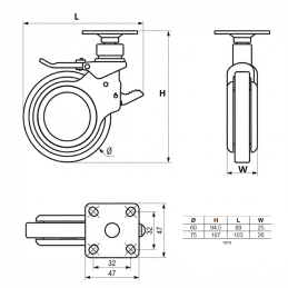 Koliesko NOVA s brzdou je spoľahlivou voľbou pre skrinky, kontajnery, pracovné stoly či iný mobilný nábytok, kde je dôležitá bezpečnosť, stabilita a ochrana podlahy.
