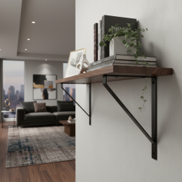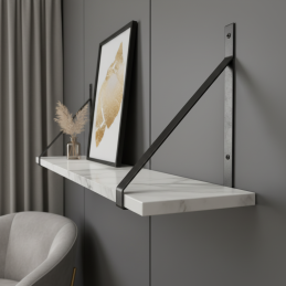Elegantný a pevný držiak police MESTRE v čiernom prevedení predstavuje ideálne riešenie pre moderné interiéry. Minimalistický dizajn doplnený o šikmý podporný prvok vytvára stabilnú konštrukciu vhodnú pre kuchyne, obývačky, pracovne či chodby.
