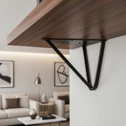 Moderný a pevný držiak poličky v obľúbenom hairpin štýle, ktorý spája minimalistický dizajn s vysokou odolnosťou. Vďaka oceľovej konštrukcii a premyslenej výstuhe poskytuje výbornú stabilitu aj pri väčšej záťaži, a preto je vhodný do kuchyne, obývačky, pracovne či dielne.