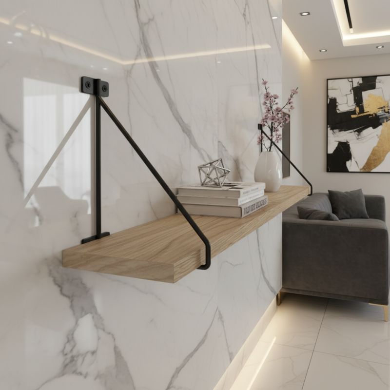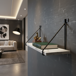 Vyrobený je z odolnej ocele, čo zaručuje stabilitu a dlhú životnosť. Držiak je vhodný pre police rôznych dĺžok a hrúbok – montáž je jednoduchá a pevná.